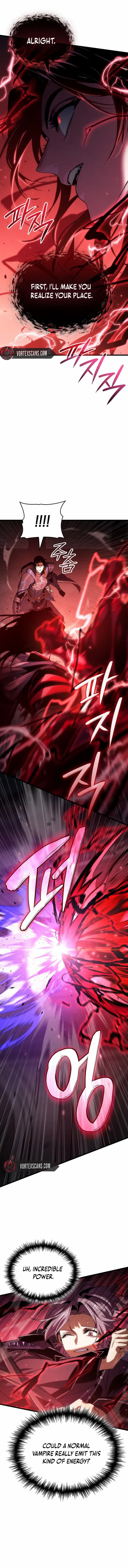 Yeah, he’s a Vampire in a massive puddle of magic blood. Why isn’t he slurping it down to heal and power up? Sometimes MC’s are just stupid.