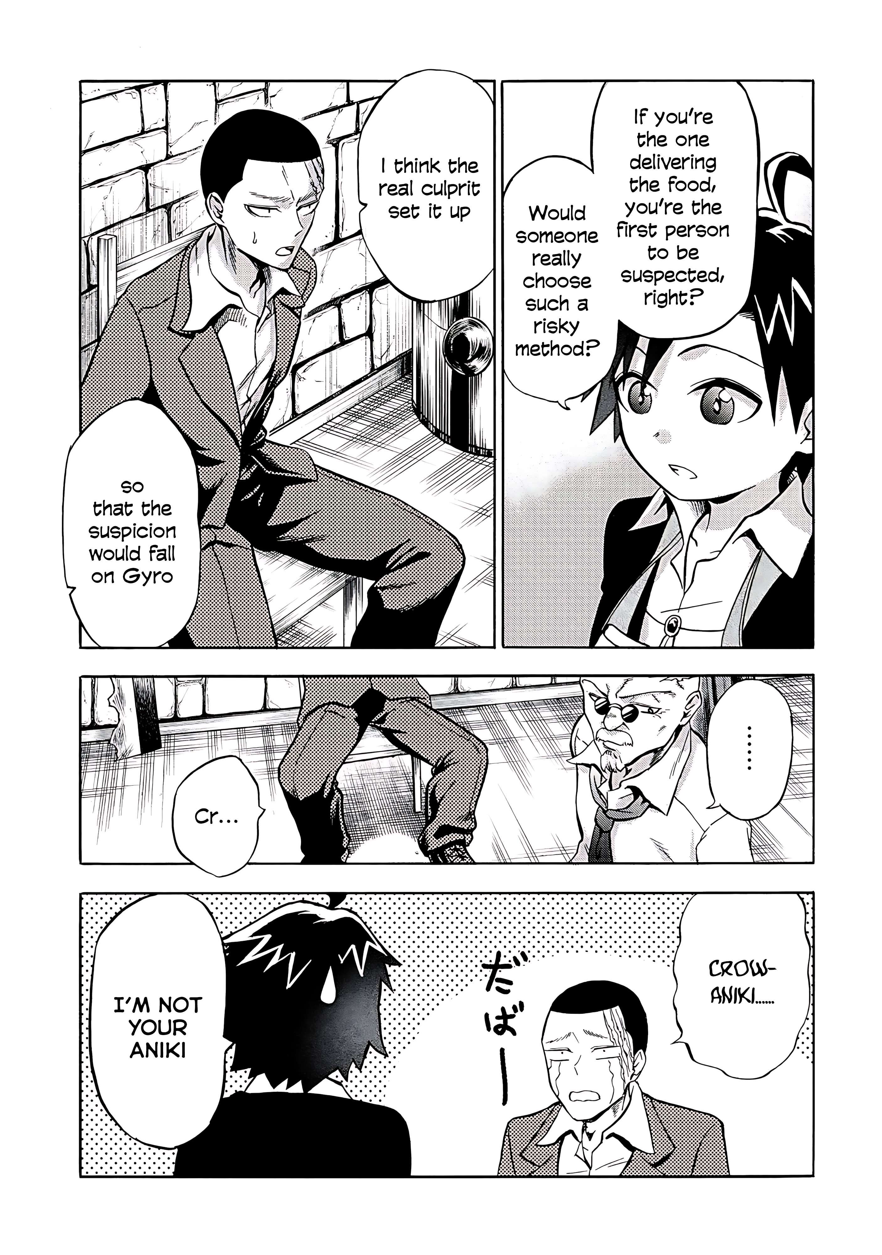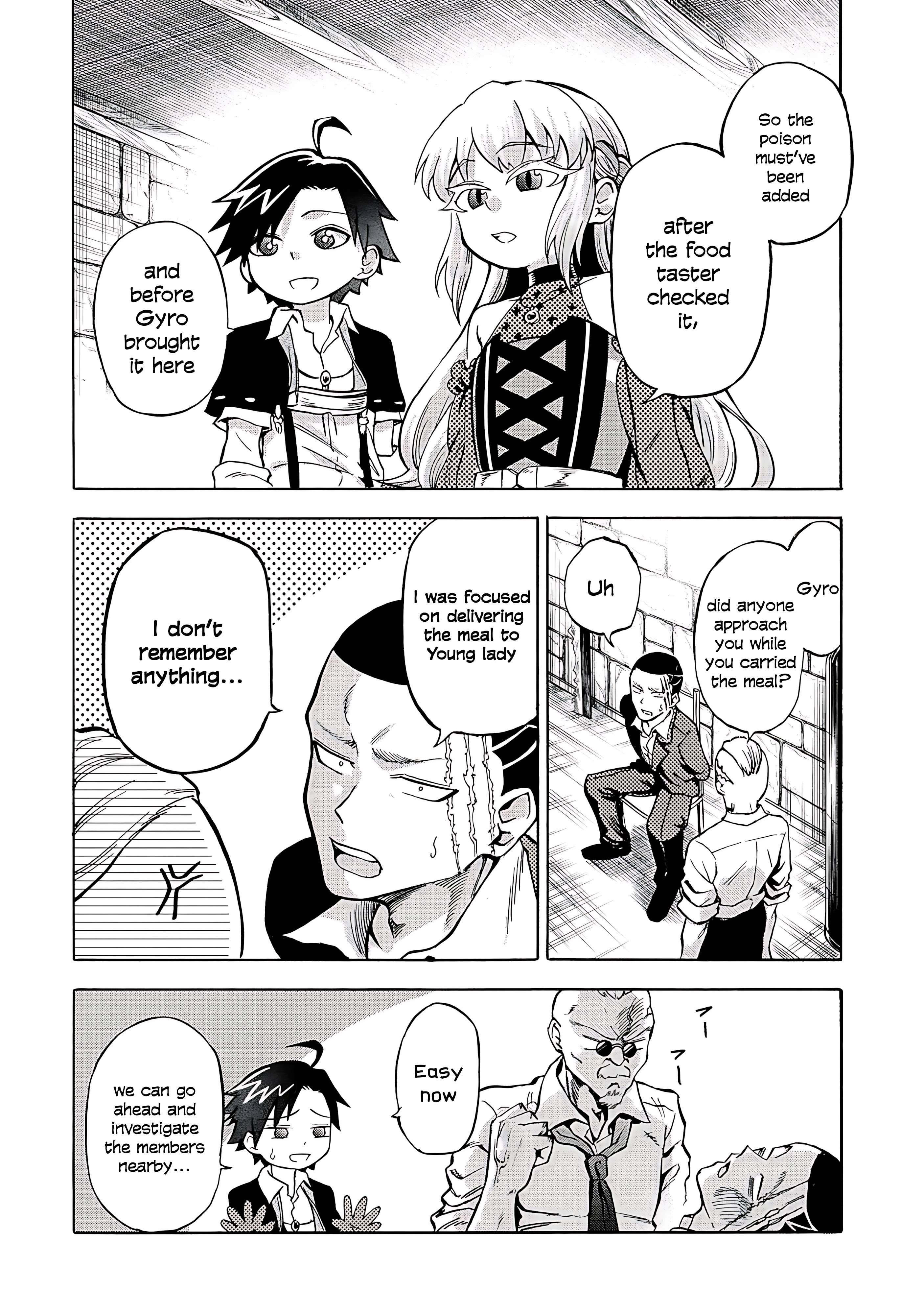 I’m pretty sure it’s Medis, I’ve been suspicious of him since the previous chapter but I’m even more now. He’s still a relative of the boss, so he’s likely going to be the next head if both the boss and Resina die. And now in this chapter we know that he’s able to manipulate insect, which is sooo damn perfect for putting poison in the food as it’s harder to be noticed.