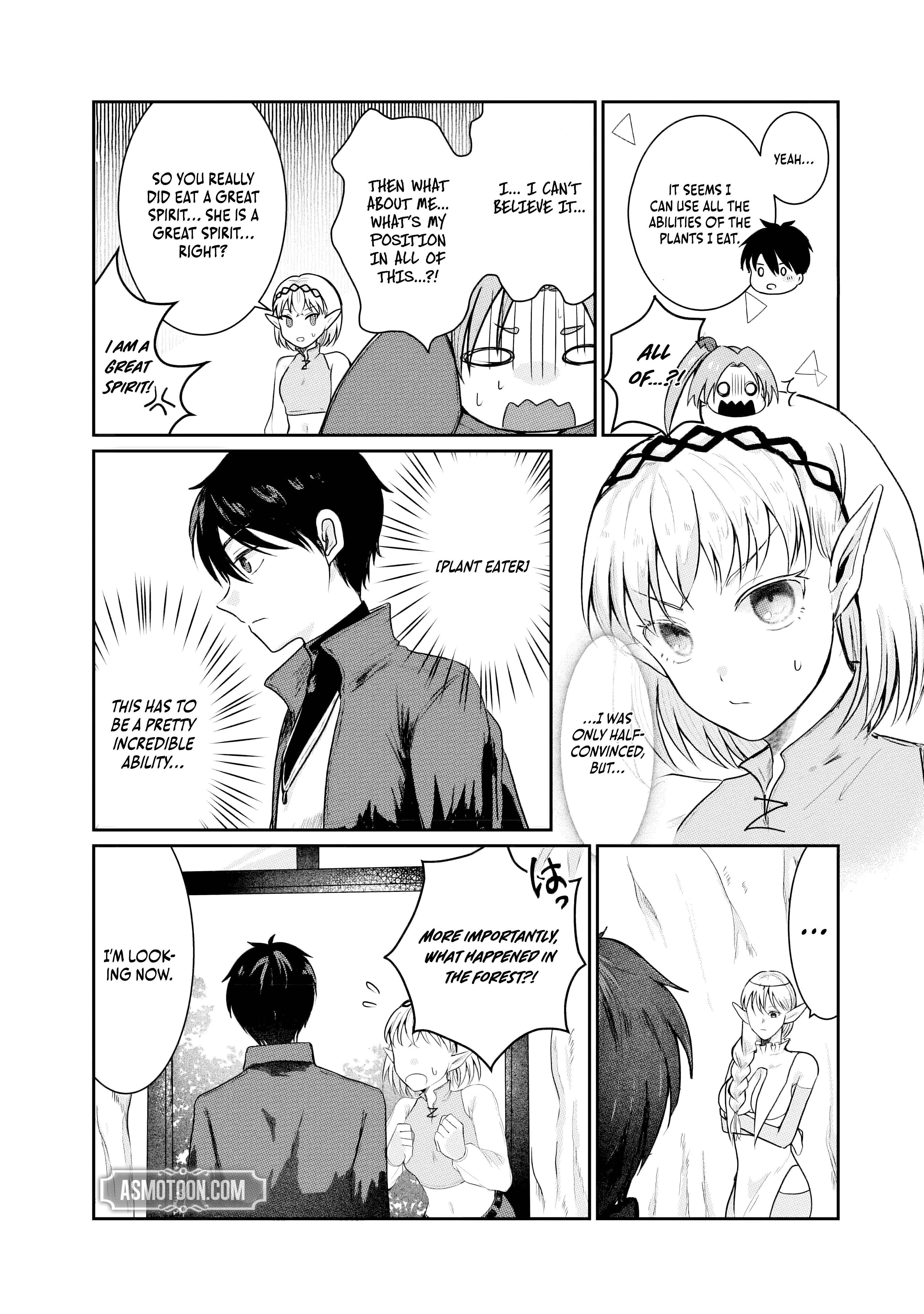 "Sono Hen no Kusa demo Kuttoke" to Tsuihou Sareta Munou Skill [Shokubutsugui] Mochi Tenseisha, Elf no Sato de Maboroshi no Shokubutsu o Tabete Musou Suru - Chapter 4